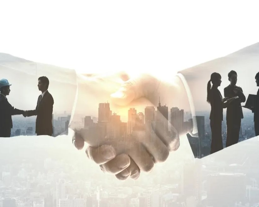 clients face to face , make a sales pitch, shake hands and